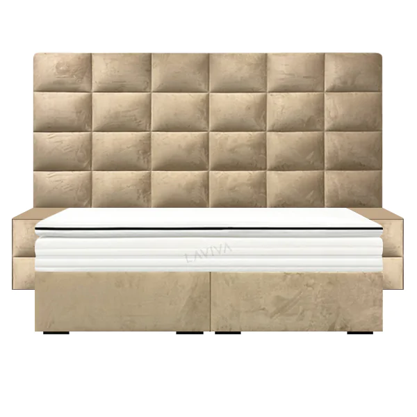 Het hoofdbord bestaat uit drie delen met royale afmetingen van 265 cm breed en 180 cm hoog. Dit maakt het bed niet alleen visueel aantrekkelijk, maar biedt ook extra comfort als je rechtop wilt zitten om te lezen of ontspannen. Bovendien worden twee bijpassende nachtkastjes meegeleverd, die zorgen voor praktische opbergruimte en de perfecte finishing touch van jouw slaapkamerinrichting.